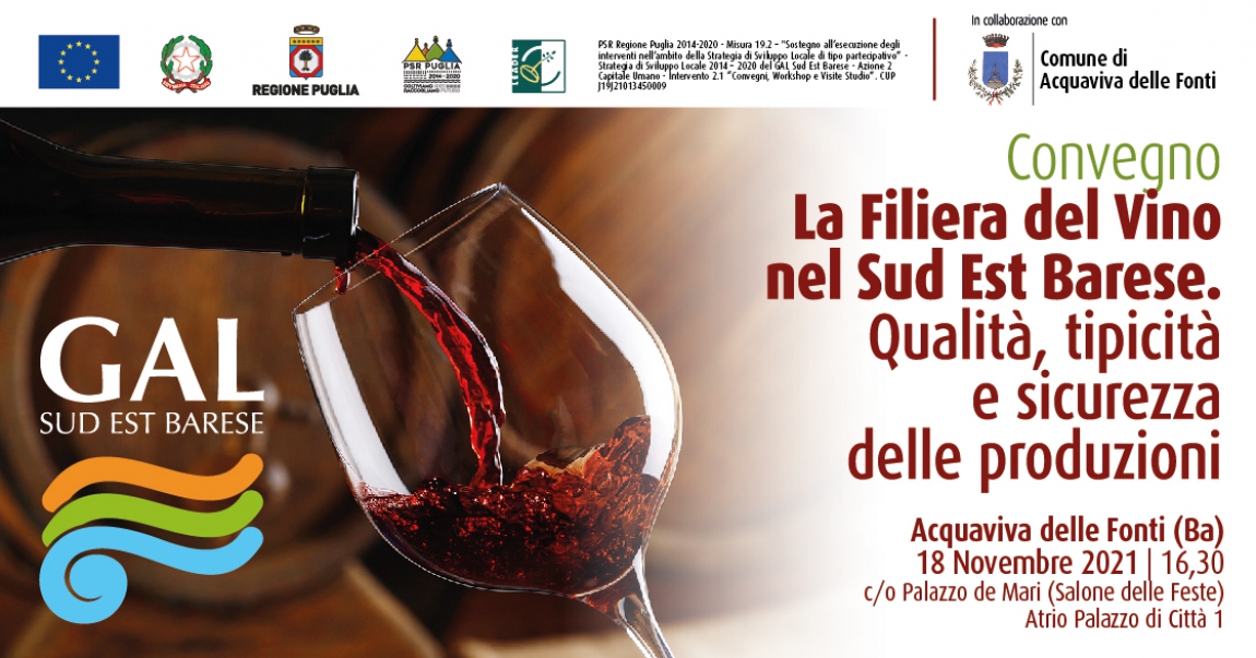 L’obiettivo, ci tiene ad evidenziare il presidente del G.A.L.-S.E.B., Pasquale Redavid, è quello “di rendere omogenea tutta la filiera eno-agroalimentare, dalla produzione alla commercializzazione alla promozione dei prodotti, puntando, soprattutto su innovazione e sostenibilità per meglio guardare al futuro”.Della possibilità di pensare per il futuro alla realizzazione di un polo museale del vino primitivo, ne ha parlato il padrone di casa, il sindaco di Acquaviva delle Fonti, Davide Carlucci.A parlare, invece, con tanto di riferimenti documentali, di storia del vitigno primitivo locale d’origine controllata è stato chiamato il prof. Giuseppe Baldassarre, esponente di spessore della stessa A.I.S.-Puglia, mentre di "qualità, tipicità e sicurezza della filiera vitivinicola" ha disquisito l’agrotecnico Gian Marco Lucarelli. Infine, di buone pratiche, in video collegamento da remoto hanno parlato Marco Katzemberger, imprenditore ed esperto di sostenibilità e Graziano Molon, esperto dei consorzi di tutela e direttore del Consorzio di Tutela dei Vini del Trentini. Questi ultimi hanno affrontato questioni,dal loro punto di vista esperienziale, legate ai “modelli di valorizzazione dei prodotti enoturistici del Trentino” ed alle “strategie di tutela dei Consorzi Trentini”.A fine dibattito, Vincenzo Carrasso, docente dell’A.I.S. Puglia e delegato della Murgia, ha tenuto un panel di degustazione soffermandosi sulla tecnica di assaggio che permette di conoscere le caratteristiche del vino ed attribuirne un valore, nello specifico riferendosi a quattro etichette di vini prodotti in zona da altrettante cantine (Cantine Chiaromonte, Polvanera, Angiuli ed Imperatore).Il prossimo appuntamento programmato dal G.A.L.-S.E.B., nell’ambito delegato piano biennale di informazione rivolto al mondo agricolo, è fissato per il prossimo 16 dicembre, a Noicattaro, dove si parlerà di “Cooperazione ed Integrazione delle Filiere” con un focus sul “Distretto del Cibo”.